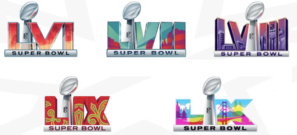 - Keeps the Super Bowl logo system consistent for brand recognition while tailoring landmark and color cues to the host city.